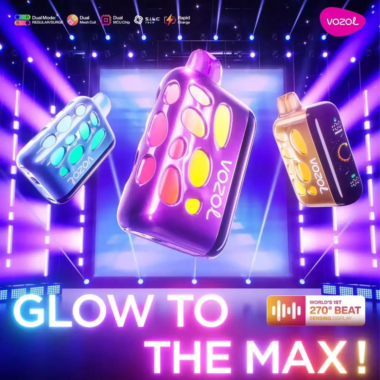 Vozol Rave è dotato di un innovativo display Beat Sensing a 270° che fornisce un feedback dinamico in tempo reale durante l'uso, creando un'esperienza di svapo interattiva. Il display digitale integrato mostra chiaramente il livello della batteria e il livello del liquido, così non avrai mai sorprese. Questa combinazione di tecnologia visiva trasforma il monitoraggio funzionale in una caratteristica affascinante.