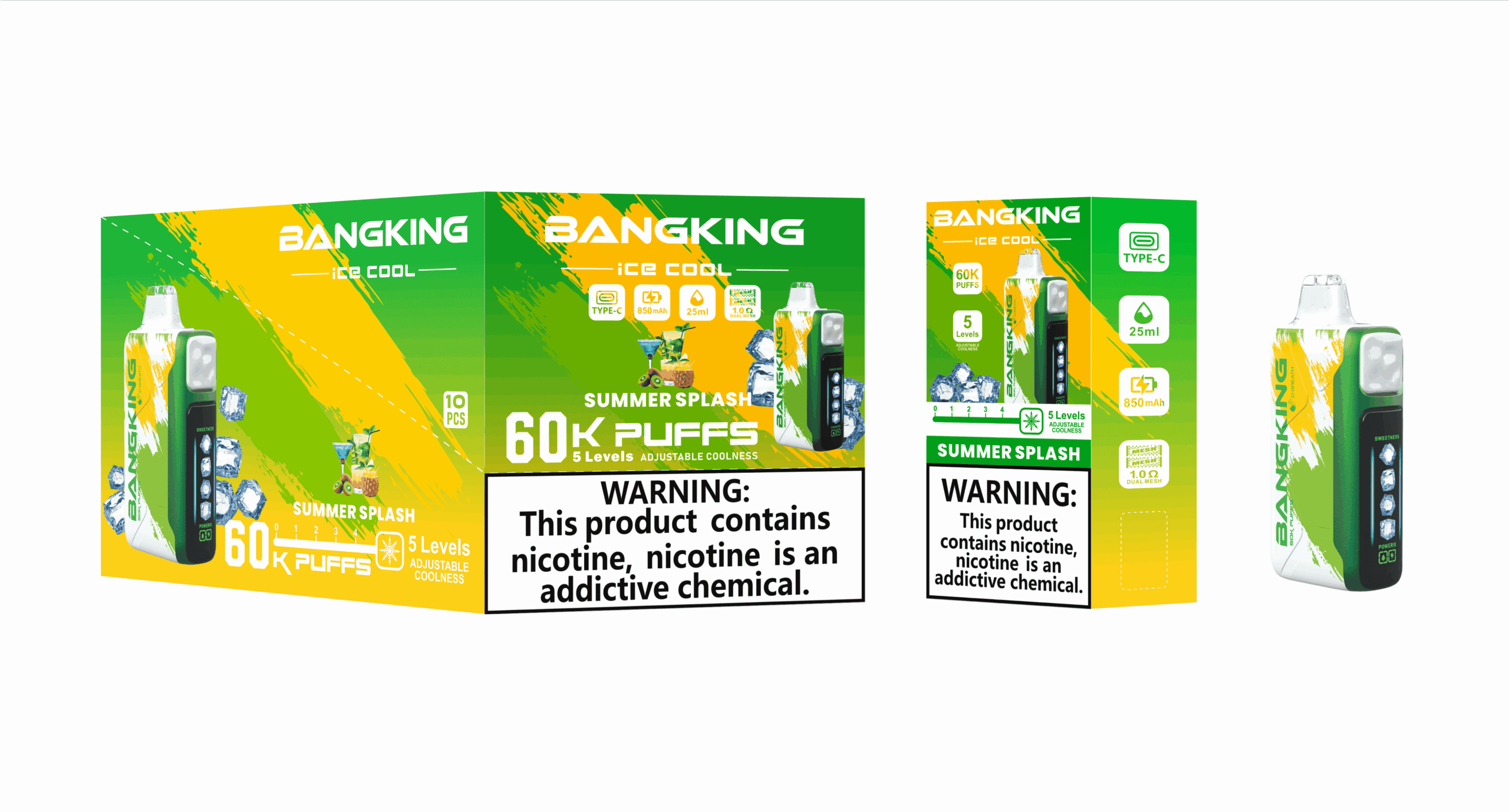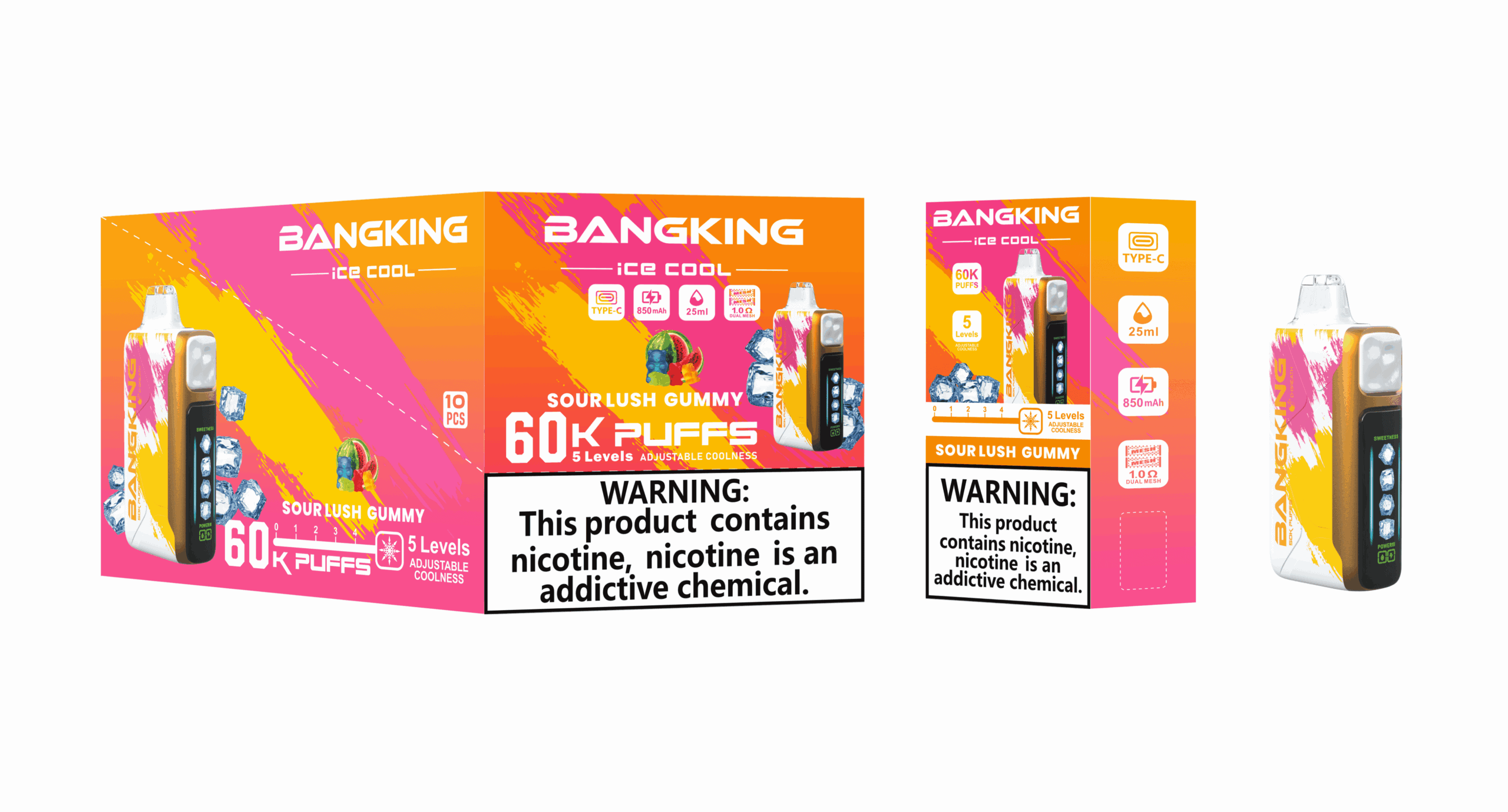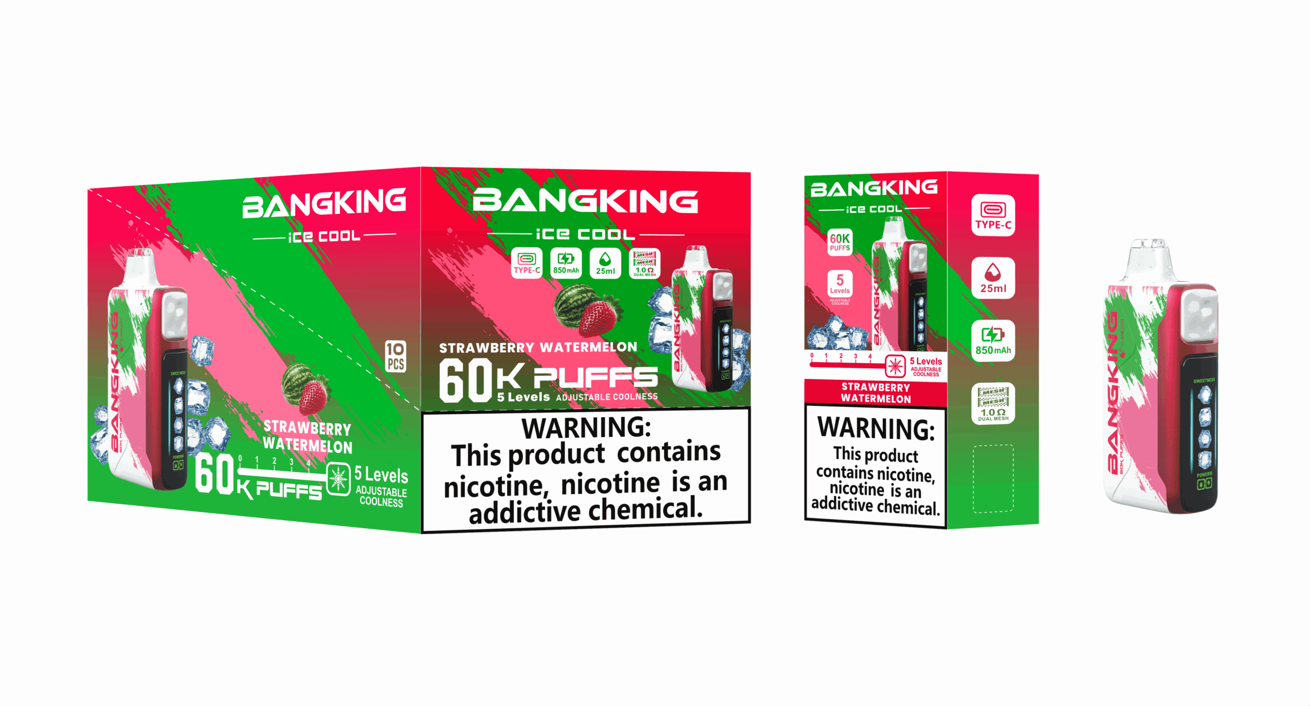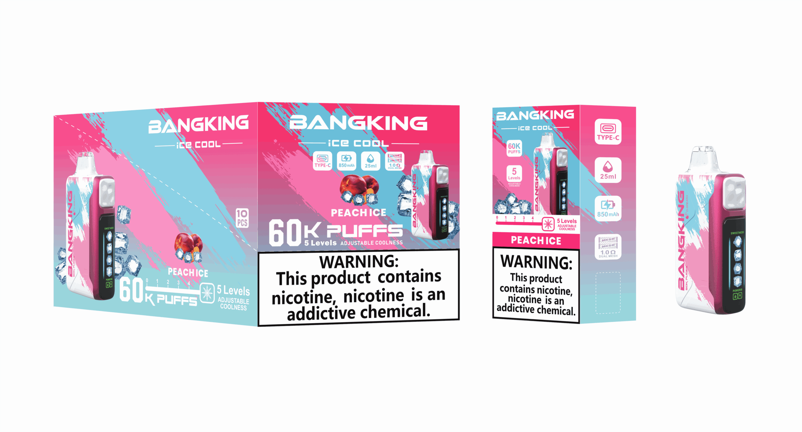 Die Bang King Ice Cool 60000 E-Zigarette bietet bis zu 60.000 Züge mit 25ml Tank und flexiblen Nikotinstärken (0-5%). Mit 1,0Ω Mesh-Coil, 5 einstellbaren Kühlstufen, 850mAh Akku, LED-Display und USB-C Schnellladung. 12 Premium-Geschmacksrichtungen für individuellen Dampfgenuss.
