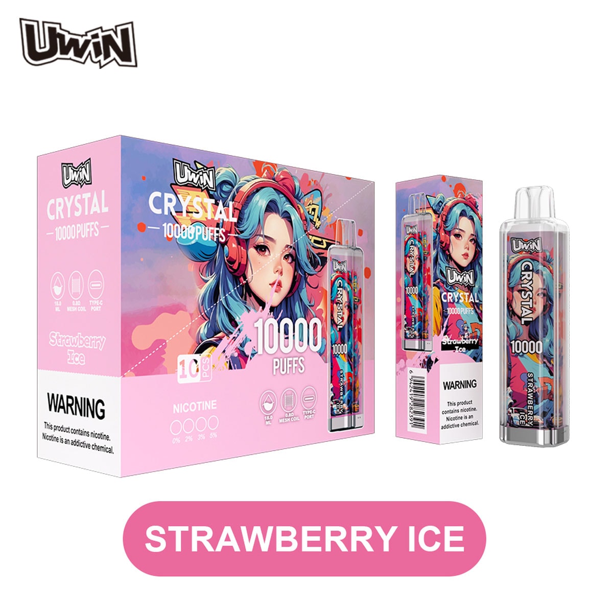 Uwin Crystal 10000 Puffs | 0-5% Nikotin E-cigarett Engångs Grossist